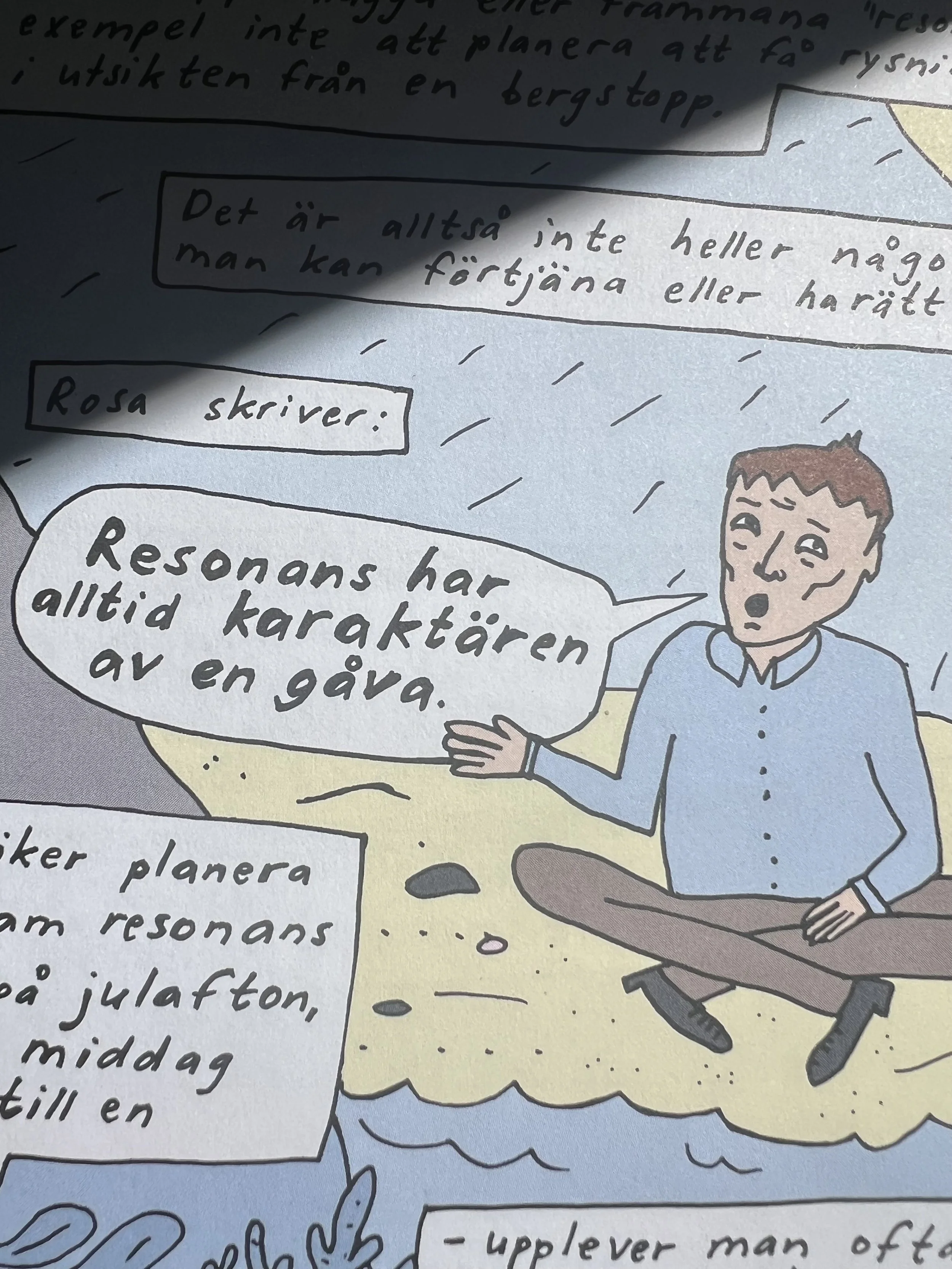 Hun har også allerede ledt mig videre til det næste læsestof af Hartmut Rosa, en tysk sociolog og filosof, hvis tanker Strömquist formidler med formidabel lethed, og som jeg får lyst til at dykke dybere ned i.